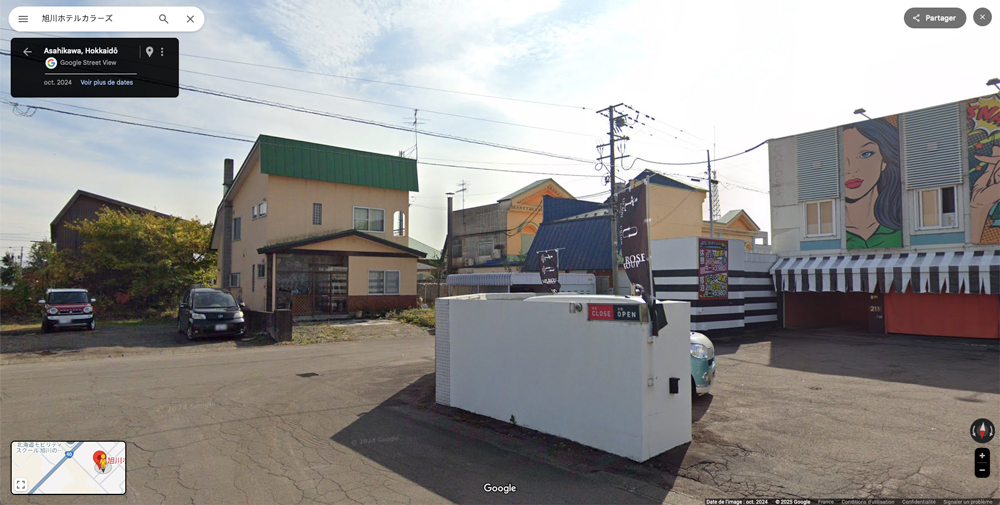 3475e jour - L'Hôtel Colors, à Asahikawa sur l’île de Hokkaidō, est un Love Hotel sans doute très banal. Ce qui me fascine ici finalement c’est l’environnement : une zone de rien faite de quelques rares habitations, d’ateliers, d’entrepôts en piteux états… Me viennent du coup, incroyablement, des envies de me promener dans le quartier.