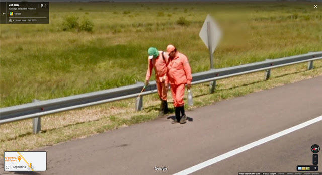 2999e jour - Argentina, Argentine, un bourg paumé, posé le long d’une nationale sans fin (on est dans le centre-nord du pays, dans la province de Santiago del Estero). Pas grand chose à voir si ce n’est deux gars aux tenues oranges chargés de pulvériser on ne sait quoi. Face à ce presque rien, me viennent cependant des idées de recherches : de France en France, d’Italia en Italie, d’England en Angleterre…